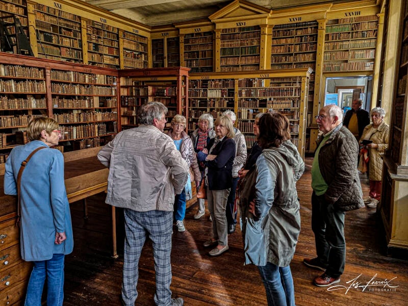 Een bezoek aan het rijke stadsarchief van Sint-Truiden werd afgesloten met een kijk in de oude seminariebiblioheek. De stadsarchiveris zorgde voor leerrijke uitleg en een deskundige begeleiding.